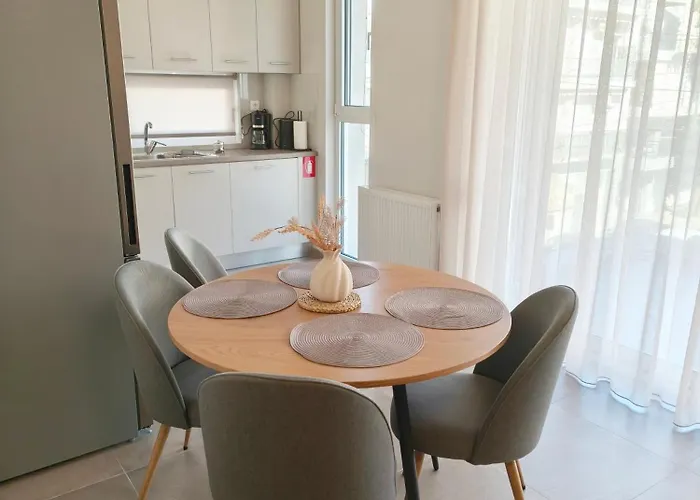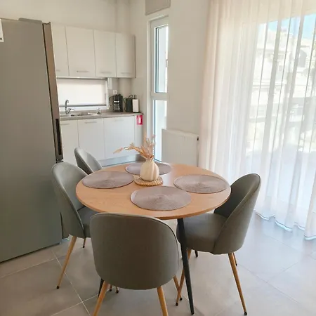 Enjoy the convenience of a kitchen in Leaf Volos Apartment With Private Parking, allowing guests to prepare their own homemade meals. The nearest bus stop KTEL is just around the corner from the apartment.